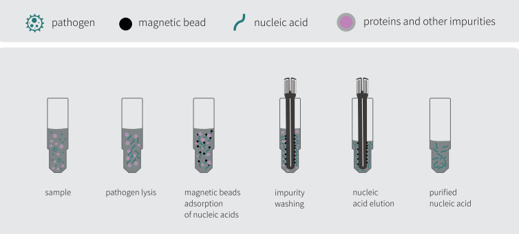 It is used to eficiently obtain pure nucleic acid from samples, which greatly reduces amplification interference and ensures detection sensitivity.